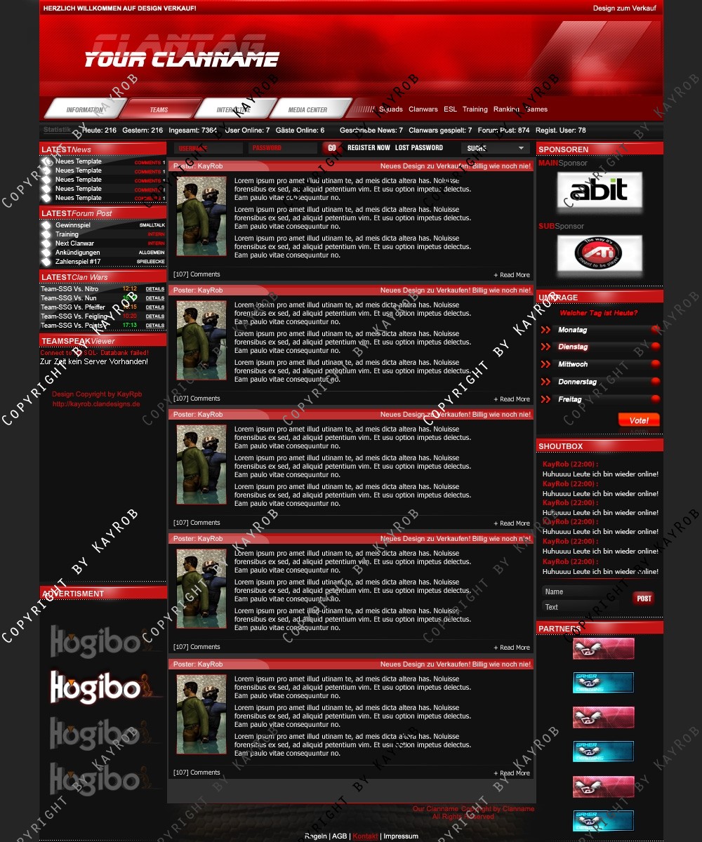 Dieses Clandesign darf OHNE genehmigung von mir Robert Erdmann nicht zum Free Download auf anderen Webadressen angeboten werde. Das weiter verschicken von Design.psd ist auch UNTERSAGT. Sollte es dies der Fall sein, werde ich Rechtliche Schritte einleiten und dies Ahnden!