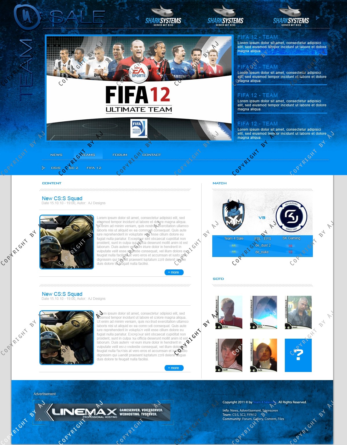 Ich biete euch ein einfaches und schlichtes GamigDesign an , welches hell und effektvoll gestalltet ist. Dieses eignet sich besonders für ein Team welches demnächst durchstarten möchte und dafür die entsprechende Internetpräsenz zum kleinen Preis braucht.